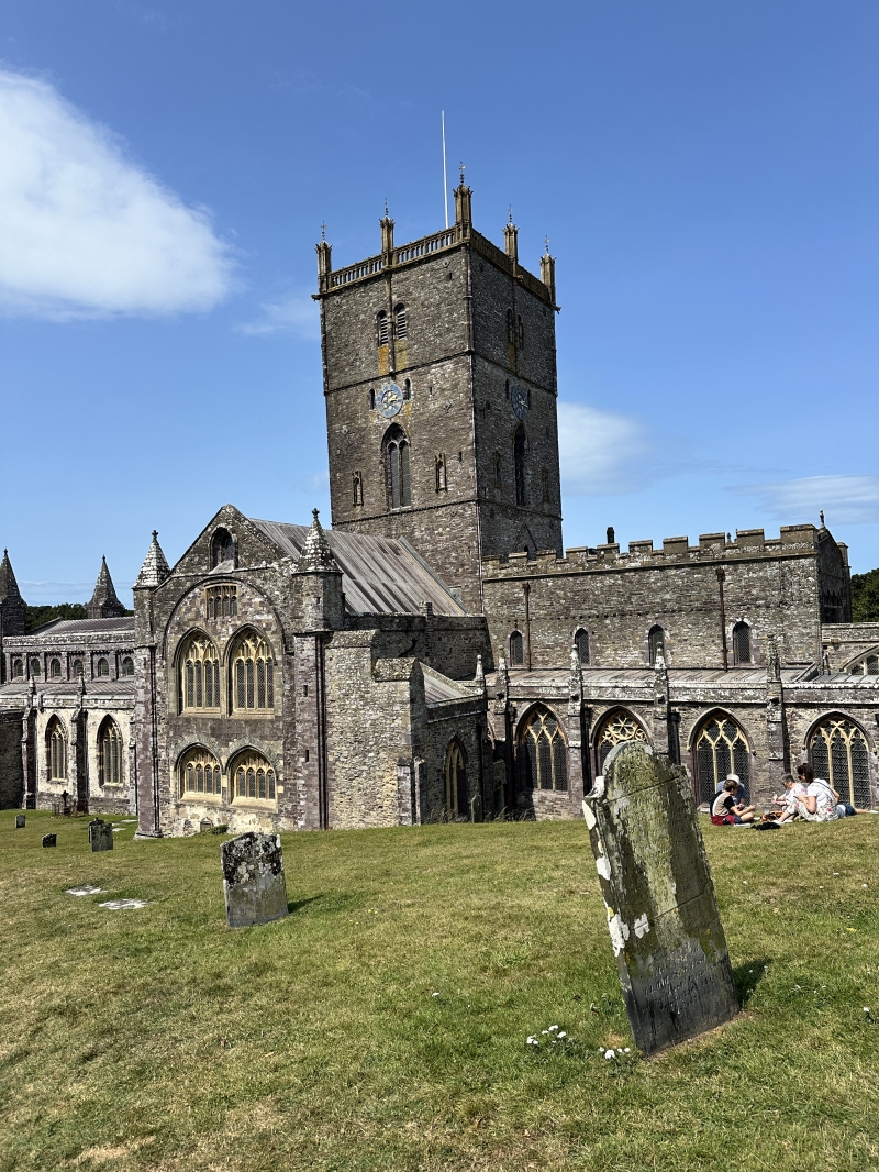 Litt over klokka ti tok vi fatt på turen vestover. Fylte diesel. Hadde en beinstrekk på Newgale Beach. Etter det kjørte vi videre og så på St. Davids Cathedral. Kjørte nedom Whitesands Bay, men der var det tett med biler og folk. Hadde en rast på Fishguard Port 15:30.
