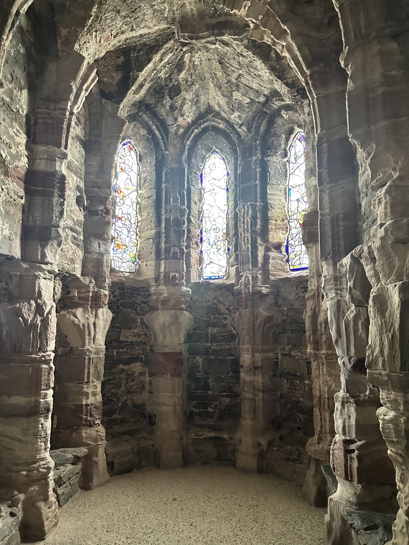Parkerte ulovlig ved en butikk og gikk en runde langs noen stier før vi havnet ved katedralen. Tok en tur innendørs og fikk sett det som var å se. Mye turister i denne byen. Gutta handlet kort på butikken før vi kjørte nedenom Whitesands, men der var det så mye biler og folk at vi dro videre for å spille discgolf.