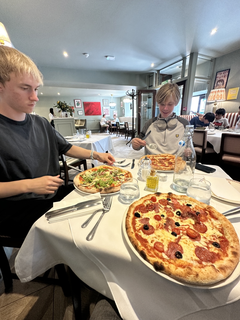 Etterpå kjørte vi til Conwy og tok en skikkelig rundtur gjennom den enorme borgen. Vi ble sultne og tok middagen på Alfredos i Conwy sentrum. Det ble stor og god pizza på alle mann.