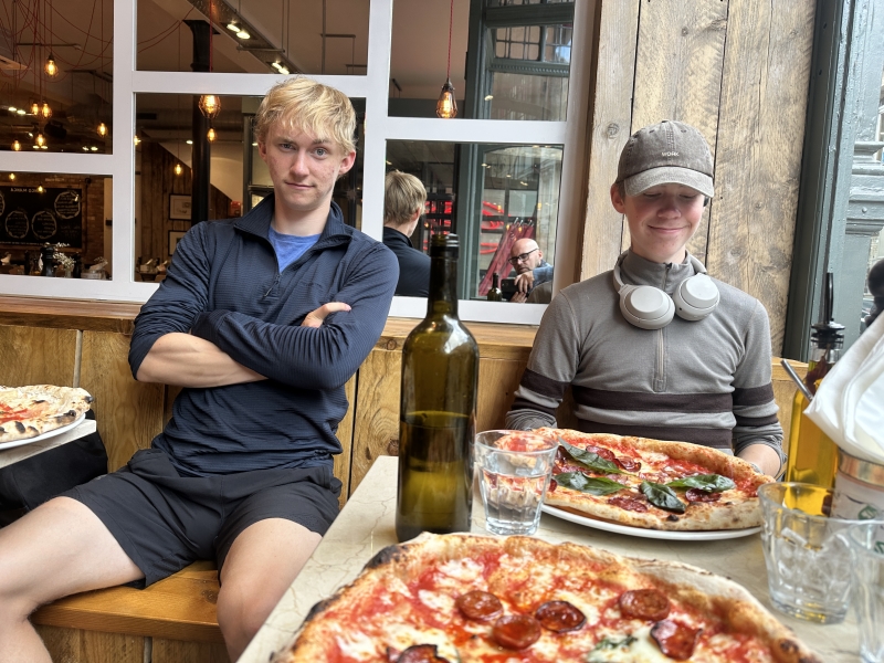 Vi møttes igjen klokka fire og gikk til Franco Manca Sourdough Pizza for hver vår pizzamiddag.