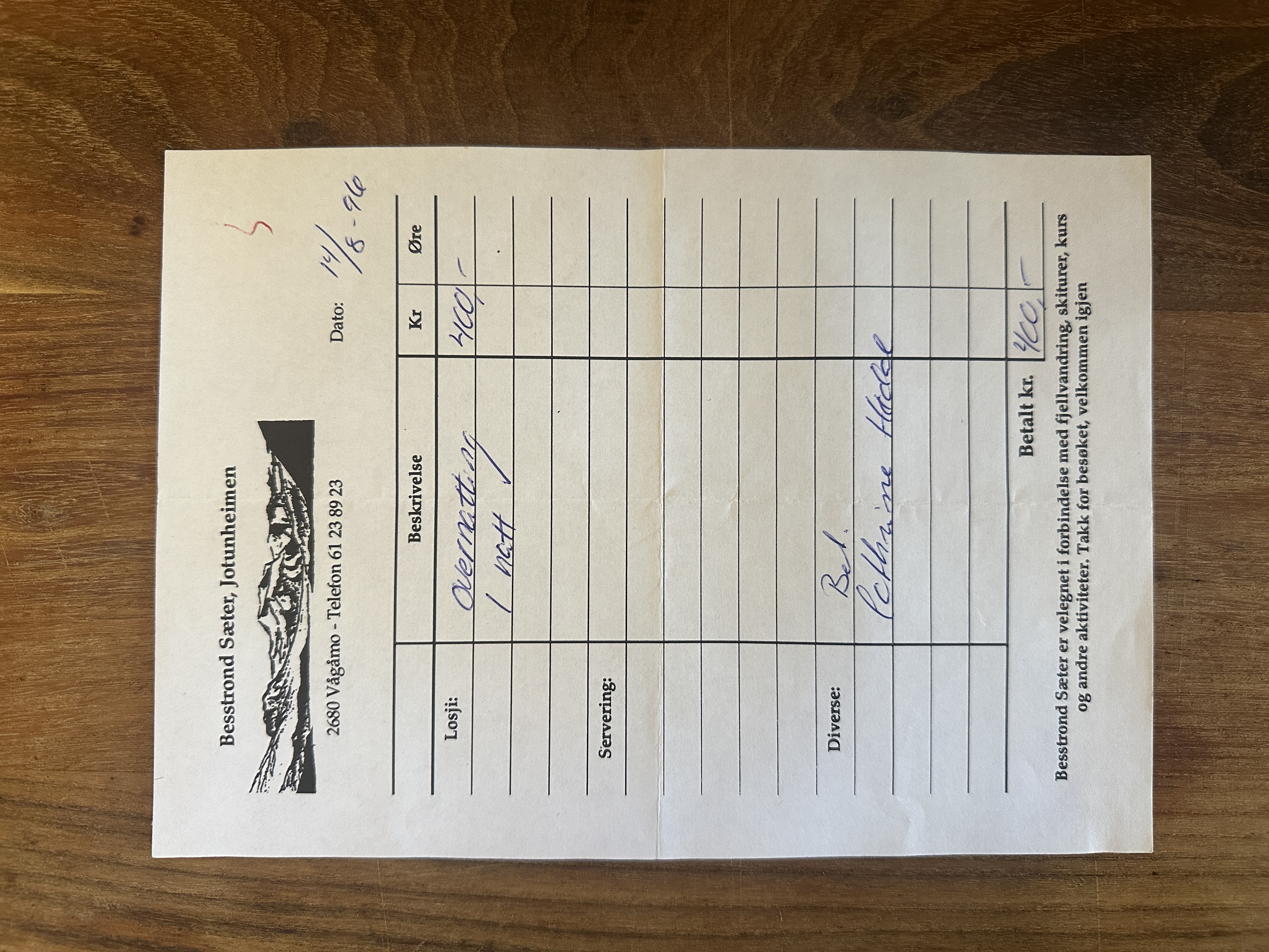 Overnattet på ...tirsdag 13. august 1996Dagbok
